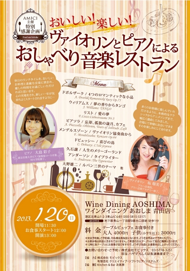 今回は、レストランにて、お食事付きのランチコンサートを企画しました。